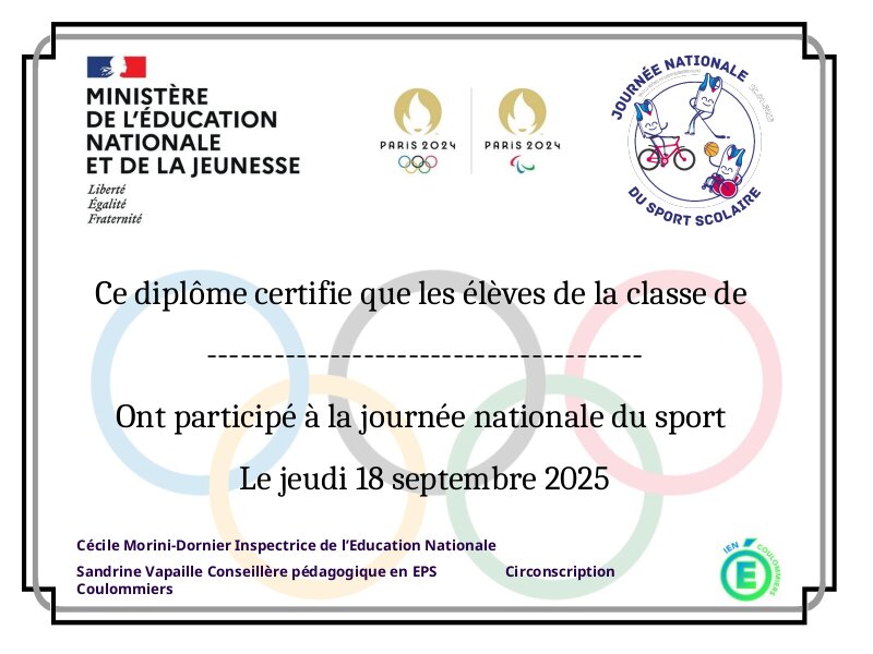 La journée nationale du sport scolaire est le jeudi 18 septembre dans toutes les écoles de Seine et Marne.